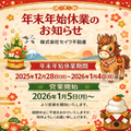 2025年12月28日~2025年1月4日まで年末年始休業とさせて頂きます。